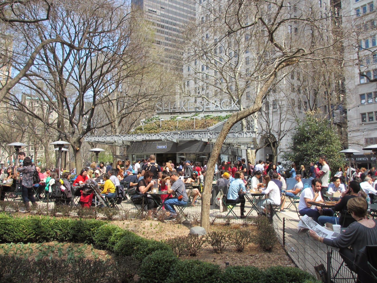 Mas, os verdadeiros hambúrgueres americanos (e estes até eu comi e me rendi) são no Shake & Shack. Dizem que são os melhores hambúrgueres de Nova Iorque (e arredores) e, na realidade são-no. Infelizmente, quando descobrimos o Shake & Shack a fila dava a volta ao Madison Square Park e nós desistimos de experimentar aqui os hambúrgueres. Só os comemos em Washington e realmente são de babar por mais. São mesmo feitos de carne (o que por si só já é novidade), e com carne saborosa e suculenta. Vale a pena (mesmo para quem não aprecia nada, como eu).