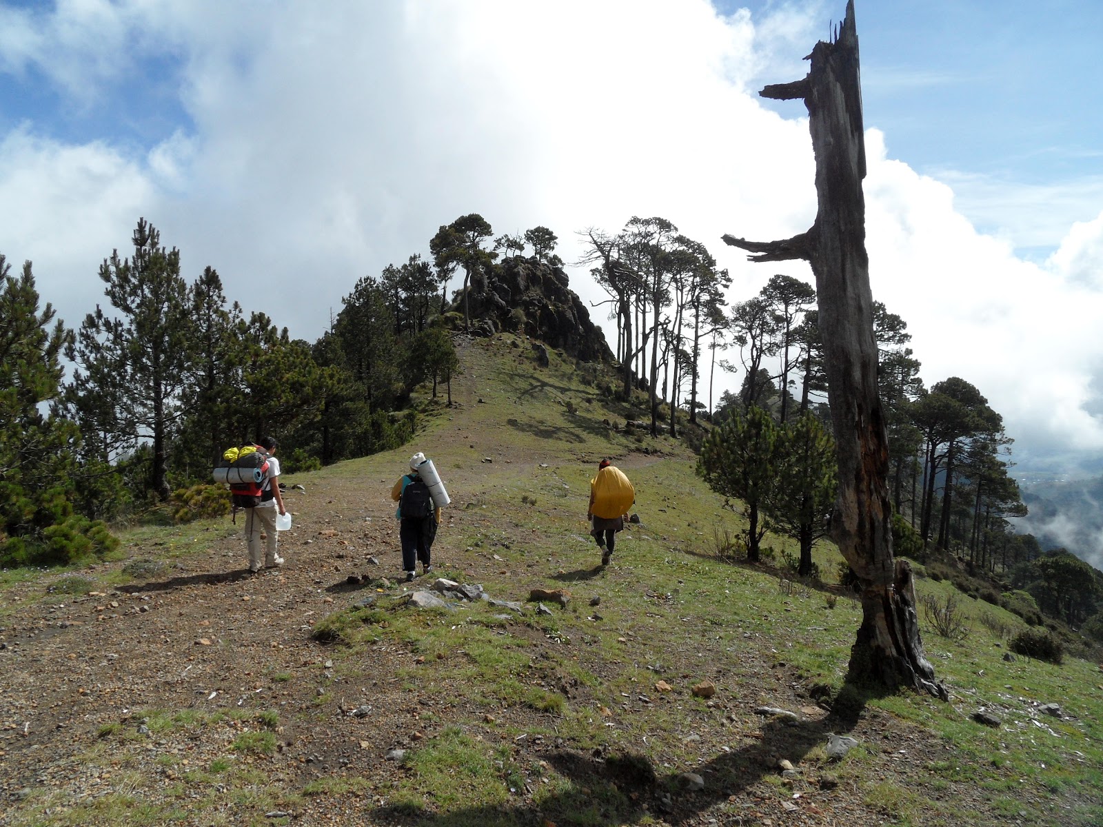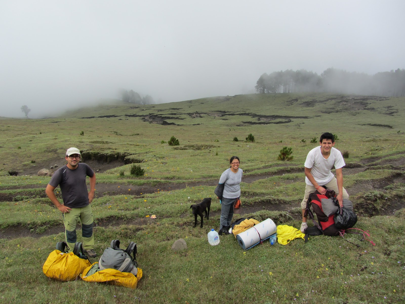 Iniciamos a subida por volta das 11 da manhã, no povoado de Tajumulco, até onde nos tínhamos deslocado em duas viagens de autocarro, passando pela cidade de San Marcos. Esta aldeia situa-se a cerca de 3200 m, logo o desnível que seria feito até ao acampamento onde passaríamos a noite seria “apenas” de cerca de 800 m. A um ritmo relaxado e com paragens frequentes, inclusive para almoço, seguimos inicialmente por uma estrada que serpenteia até acabar a meia encosta, para depois tomarmos um trilho pelo bosque, que nesta zona não é mais do que um dos muitos canais de escoamento de águas da chuva.