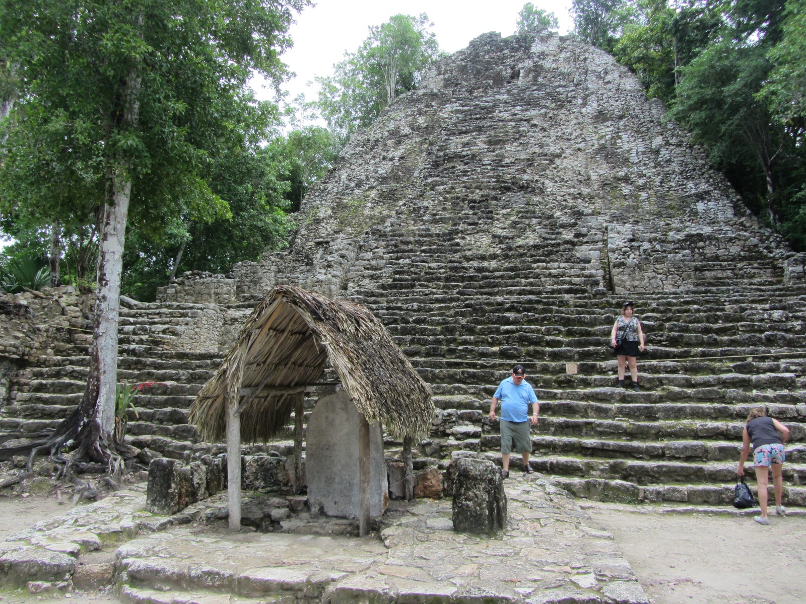 A grande atracção deste grupo é a pirâmide de Nohoch Mul, a mais alta da península do Iucatão (embora a de Calakmul dispute este prémio), com 42 m de altura. Subindo com cautela (pois o piso estava escorregadio), atingimos o cimo e desfrutamos de uma vista espectacular da selva circundante. Foi pena o tempo, mas a estação das chuvas é mesmo assim, e a copa das árvores envolta em neblina também faz parte da mística da selva.