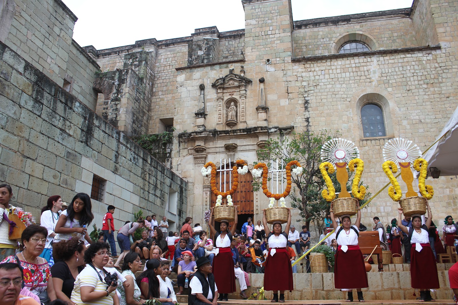 A gastronomia de Oaxaca é um ex-libris da cidade e por isso decidimos almoçar no mercado 20 de Novembro, onde almoçam os locais. Nestas coisas raramente corre bem mas as aventuras são sempre dignas de registo. Entre “enchilladas” super picantes e “parrilla” de carnes sem carne salvaram-se o arroz e os frijoles, os clássicos mexicanos. Da parte da tarde, embrenhamo-nos no mercado Juarez para comprar artesanato e depois de uma visita a Basilica de la Soledad, a igreja dedicada a virgem da Solidão (algo que nunca tinha ouvido falar mas gostei), voltamos a calle Alcalá e a praça de Santo Domingo para assistir as festividades de Guelaguetza. Um magnífico fim de tarde.