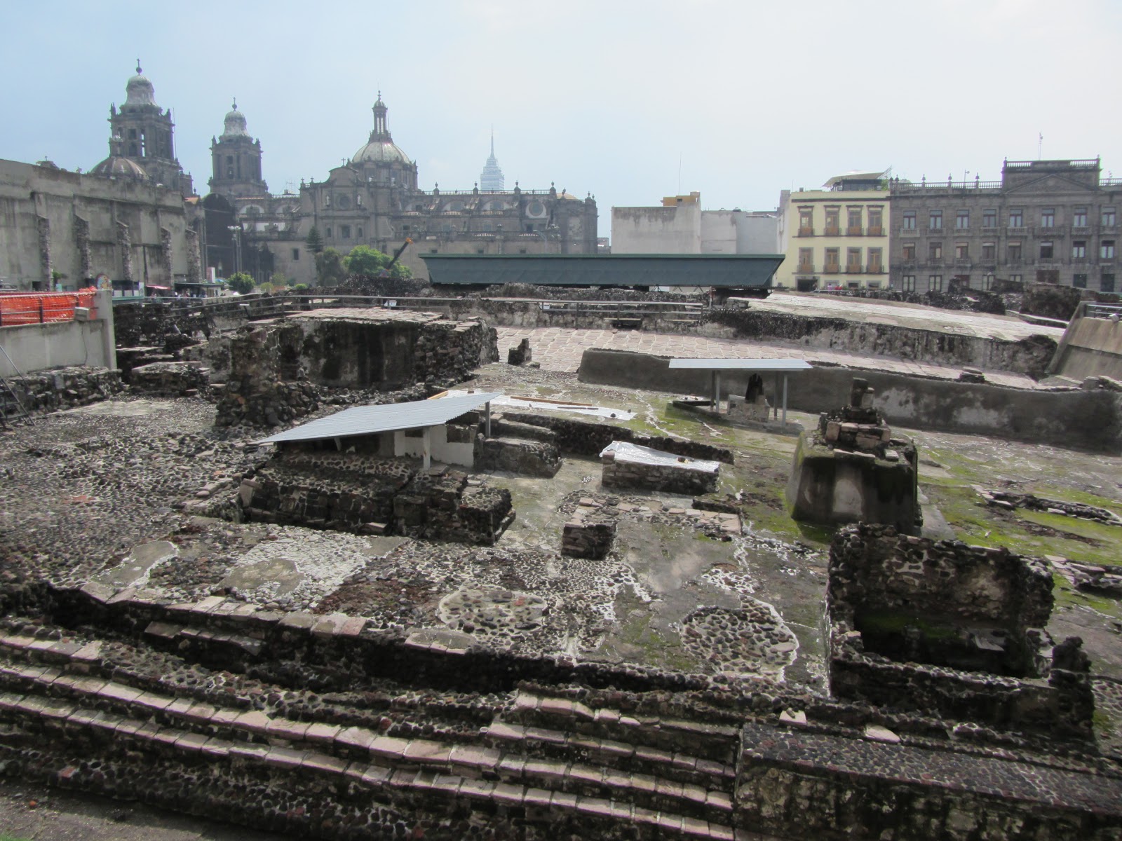 Da parte da tarde, visitamos o Templo Maior, o que resta da cidade Azteca de Tenochititlan, destruída pelos espanhóis em 1521. Apesar das ruínas serem uma desilusão (porque as serpentes estavam tapadas), o museu do sitio e um assombro. Ficamos mais duas horas la dentro. Para alem das centenas de artefactos descobertos, recentemente os arqueólogos descobriram um monólito com o Deus Tlaloc, sendo provavelmente um dos maiores monólitos descobertos ate a data.