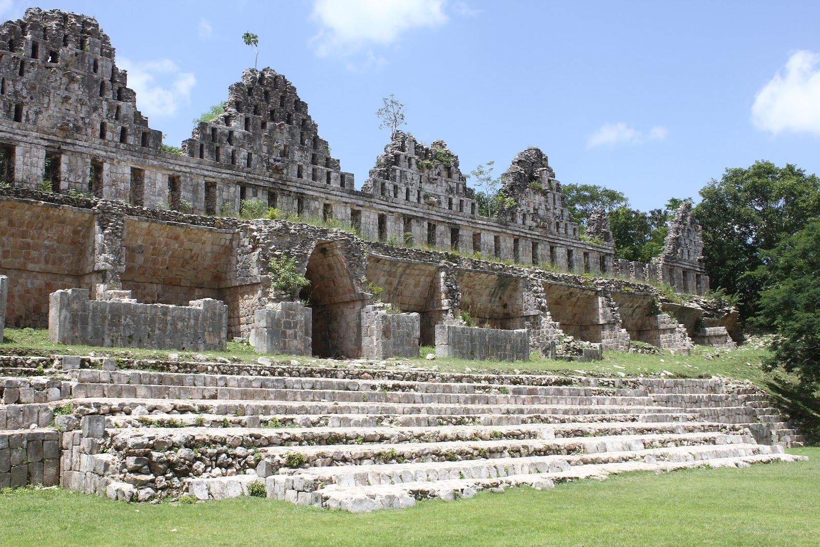 Infelizmente, não se pode subir a inclinada escadaria desta magnífica pirâmide, que tem uma arquitectura invulgar, com uma base oval e com paredes exteriores abobadadas. É possível admirar de longe a fachada de um templo no segundo patamar, uma máscara Chac (o Deus maia da chuva e da trovoada), em que a porta é uma boca aberta. A escadaria tem também o mesmo Deus representado, ao longo da sua lateral.