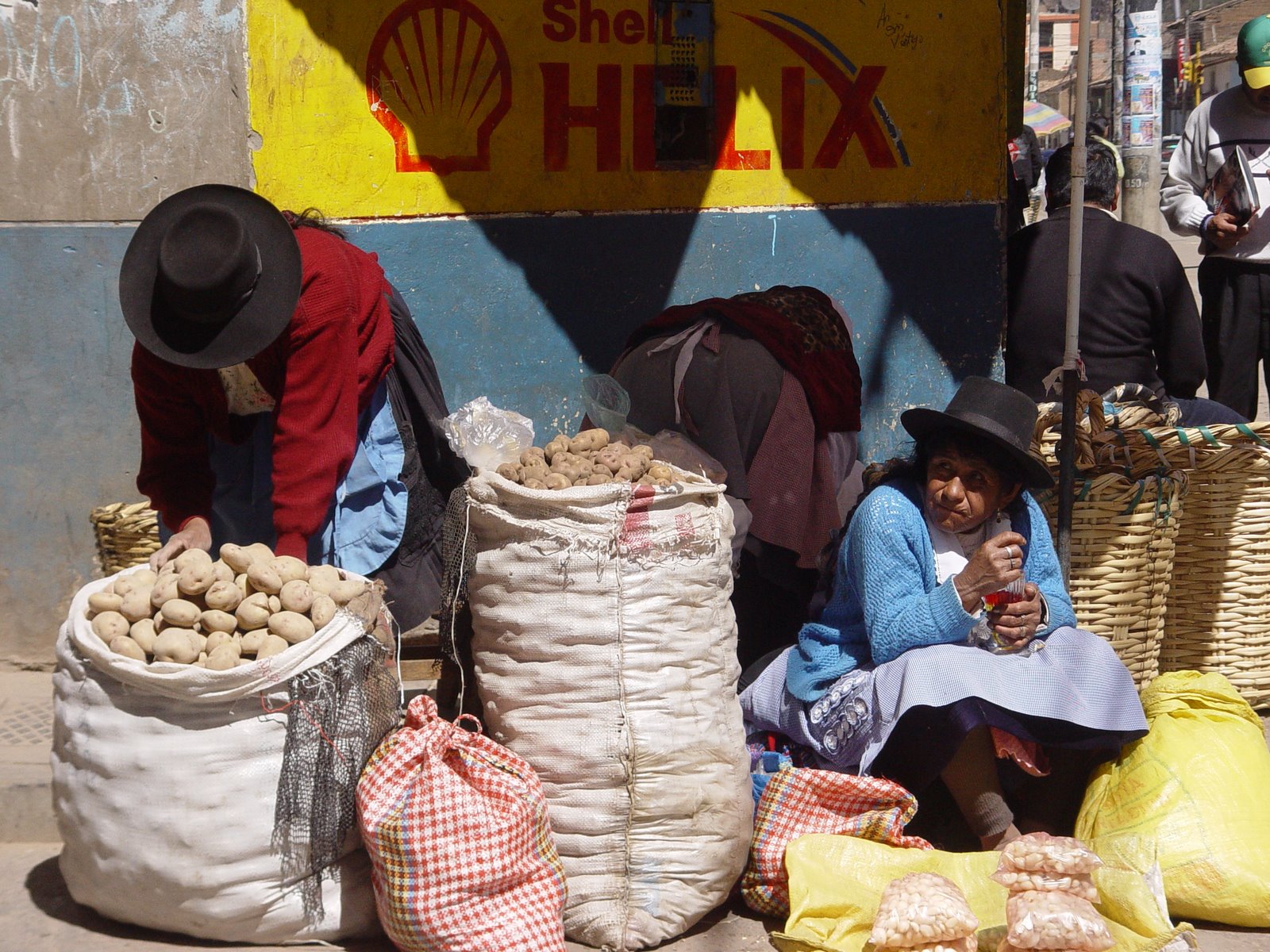 De manhã descobrimos, enquanto nos passeávamos pelo “pueblo” que somos os únicos “gringos” in town! Não se vêem turistas nenhuns aqui. E foi fácil de perceber porquê. O comboio mais alto do mundo parte daqui para Huancayo e foi essa razão que nos trouxe cá, mas a linha está em obras e a viagem não se efectua até Dezembro. Ficamos tristíssimos… Mas, valeu o desvio. A população de Huancavelica é muito simpática, pura e acolhedora. São os peruanos mais simpáticos que conhecemos até aqui. Gostam de brincar connosco, metem conversa, dizem piadas, etc. Até um grupo de três miúdos, engraxadores de sapatos, se vieram sentar comigo no chão a perguntar se eu era “gringa”! São muito humildes. A vila é muito pequenina e visitamo-la numa manhã. À hora do almoço apanhamos um táxi colectivo para Huancayo.
